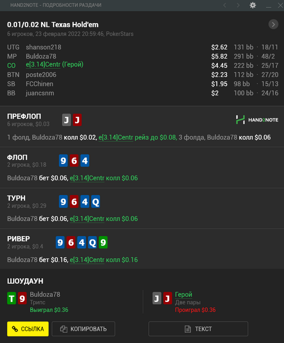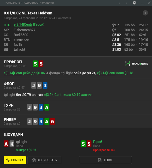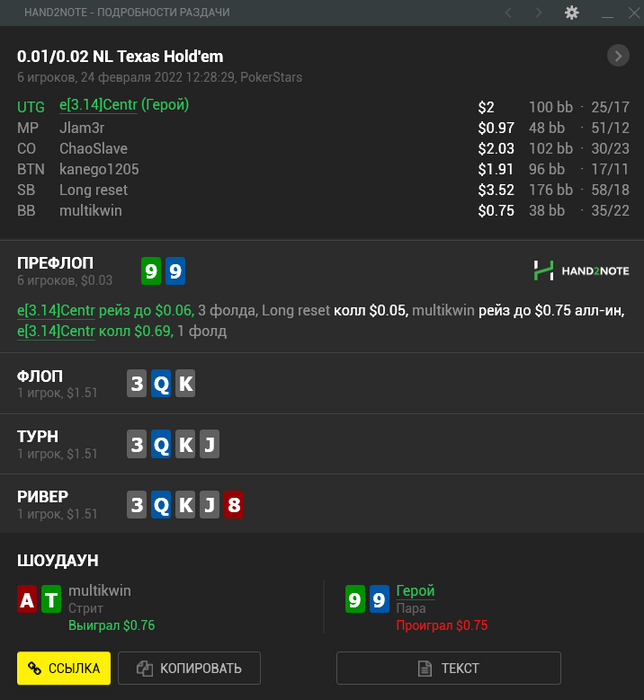 Dusian, там парень просто 6 или 7 изолейтов до этого фолдил (записал нотс), а в этой раздаче подколол, мне показалось странным и я решил не разгонять. 😇