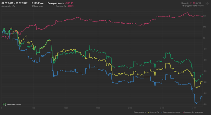 А вообще если по правильному то, там было бы рейз донка 18, он колл с ТП. Банк 36, чек чек. Ну и ривер он бы ставил не 16, а 14-15 к примеру, я колл. Мне кажется то, на то и вышло :) Можно и поисполнять поидее на флеш, но без блокера на А vs V.I.P на спаренной доске и имея шдв, такое себе :)