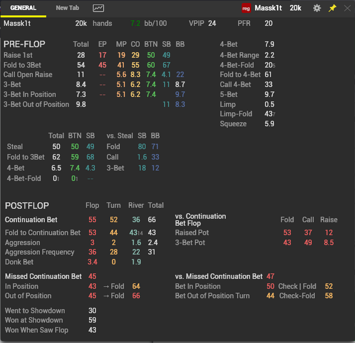 Massk1t, на МП у неизвестного оппа, тем более с такими приемлемыми статами довольно узкий ренж опенрейза и соответственно колл будет тайтовым. И в покере мне поведали одно довольно простое правило - в узкий ренж лучше не блефовать, оссобенно без позиции. В данном случае нужно было подгонять ставку на терне под спр 0,9-1,0 на ривере, тогда возможно удалось выдавить АТ, но это не точно) таким пушем ты репишь только фуллы, натс флеши не всегда пушат в такой ситуации, а вот с низким СПРом многие флеши начнут пушить и А9 впринципе тоже могут, рассчитывая на колл от оверпар с пикой. Учитывая, что у оппа десятка, тебе остается одна комба ТТ, одна комба Т9s, а значит у тебя может быть много блефов)
