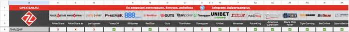 Актуальные покер-румы, доступные для игроков из ЛДНР представлены в таблице по ссылке: