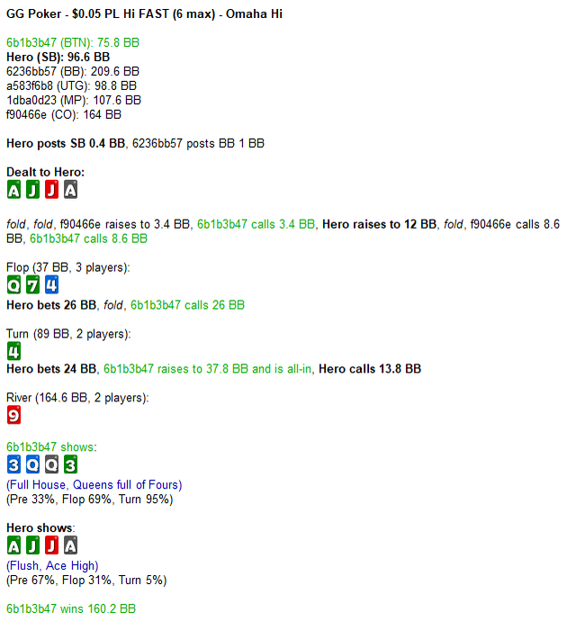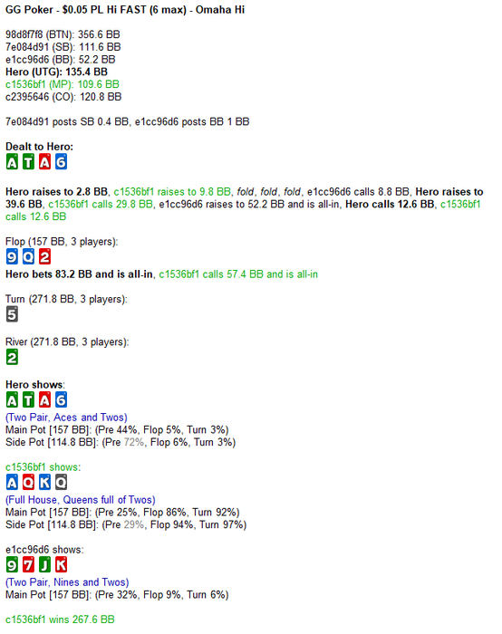 2) Думаю, что правильная оценка рук на флопе/терне - очень важная составляющая успеха в омахе,