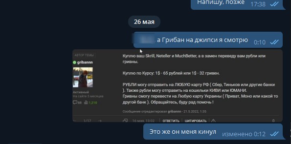Почему он после того как кинули на обмене человека он сразу поменял свой телеграмм с johnnyhelp на Hazaronta ?