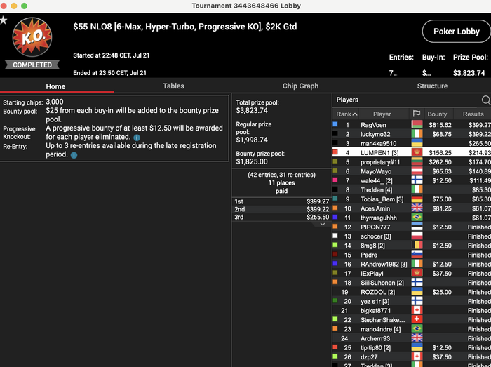 Особых надежд я не испытывал, но и руки опускать не собираюсь)Буду продолжать катать вплоть до WCOOP и делиться результатами. Глобальные цели остаются прежними, локально-постараюсь к концу месяца выйти в плюс, нащупать игру и бустануть профит, чтобы к середине/концу августа сделать "рывок" Лишь бы только не как у деда.
