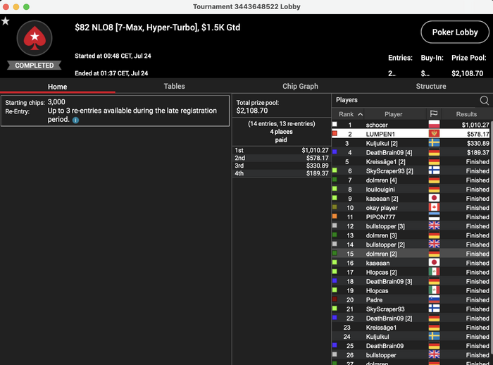 В моменте бр приближался к психологической отметке, после которой мне было бы пришлось впервые столкнуться в карьере -назову ее «перегруппировка» серьёзный выход из зоны комфорта, в контексте покера да и не только покера, но получилось немного нафармить в регулярках и отпустить уже наконец все эти »влажные мечты» о доезде в ивенте.