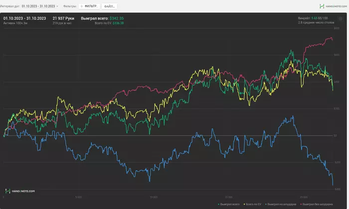 А теперь самое главное о чем должен думать любой микролимитчик, график с Фишом 50+. Все время Брос