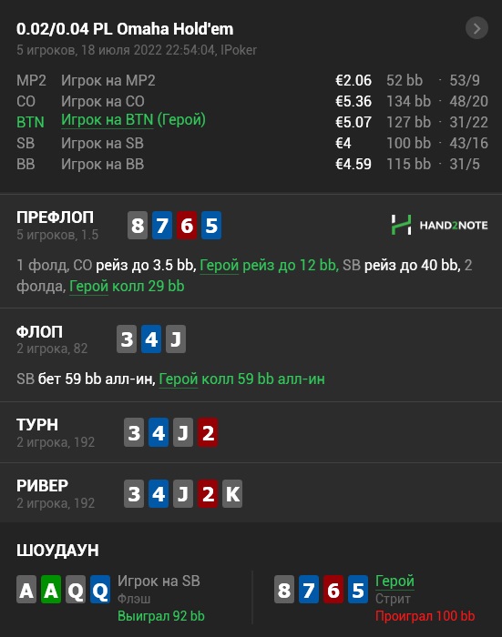 2. На флопе -ПОТ! На терне-Ой, у него 200 бб! Надеюсь не стрит?