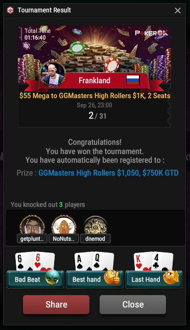 тебе ж сказали гарант 10к ты заработал, играй турнир за как 500 баксов и всё.