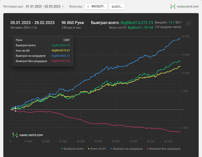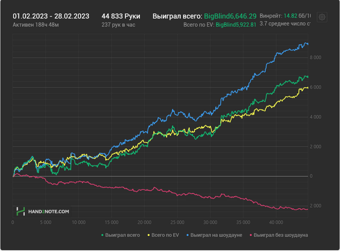 Всем привет. закончился Февраль, так себе месяц в покерном плане, не очень доволен как играл, но скорее влияние оказывало то, как порой неудачно складывалось. Но месяц в плюс.