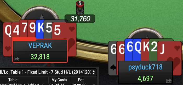 В кеше я сдалился за какой-то лудоманский стол по безлимитной пло8 вроде 2/4 (другие столы были пустые). Там пушили всё подряд, я пытался подловить на сильных рука, но в итоге всадил баксов 400. Остальной минус это 5 карточная пло8, в которой сложно разбирать раздачи из-за отсутствия трекеров и есть реги играющие чуть ли не посменно.