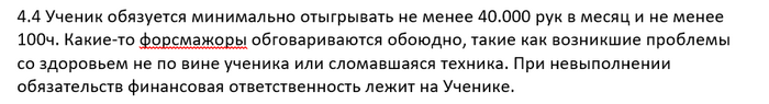Не знаком конкретно с ТСом, это камень не в его огород, а больше к тебе вопрос, эти топовые школы точно готовы инвестировать средства и знания в околонулевую (отсюда очень дисповую) катку? Вопрос риторический, ибо ответ очевиден. Есть куча очень слабо компетентных и/или необучаемых людей, в которых на рыночных условиях никто в здравом уме инвестировать не будет. Повторюсь, возможно конечно у ТСа уровень игры на момент старта сотрудничества был годным, но сомневаюсь, что в этом случае он согласился бы на подобное сотрудничество. Отсюда вопрос: какой смысл теперь пенять на условия договора?