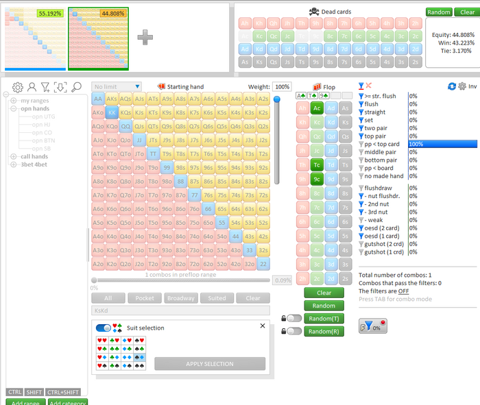 я думаю, когда на таком флопе у нас 44% эквити против диапазона, нам главное проиграть поменьше