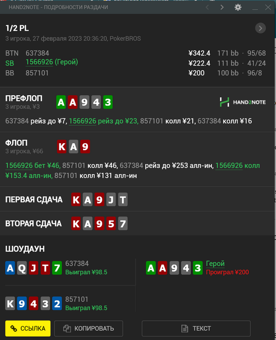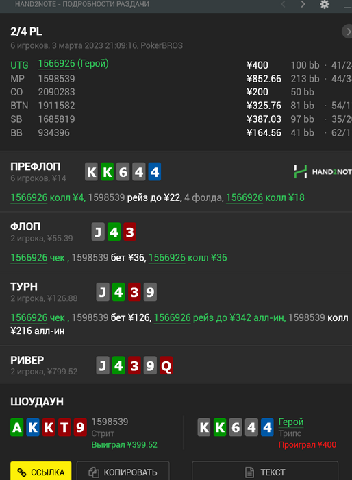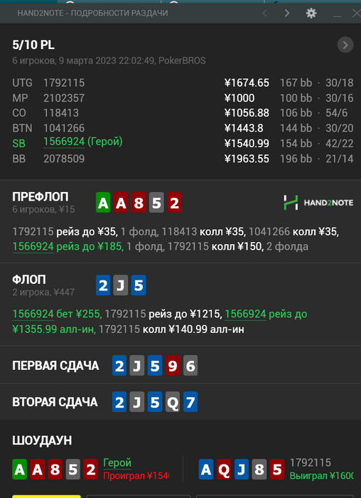buba_bratkovski, я играю месяцев 9 в приложухах, ожидание мб 4бб, не уверен, слишком мало рук на данных играемых лимитах, а не на бесплатных.