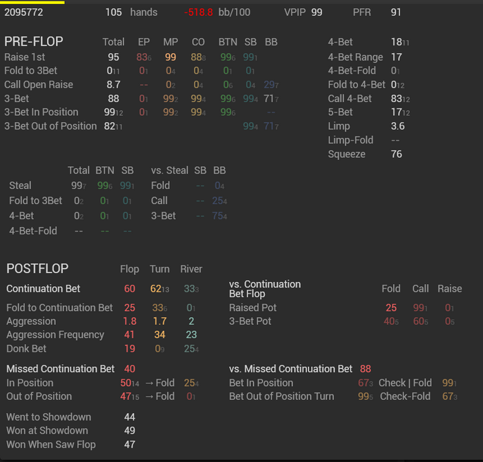 Не лучший месяц, но терпимо, чем я недоволен больше всего, это дистанцией. Как минимум стоит откатывать по 15к рук в приложениях, а вообще, чем больше рук, тем успешнее будет получаться брать на удушающий диспу. Вообще такие стрики очень сильно мотивируют развиваться: анализировать раздачи, изучать солверную стратегию, обсуждать споты с тренером или напарником. Стрик - двигатель прогресса в покере. Без "худших отрезков в своей жизни" Трутеллер бы никогда не стал топом, да вообще бы не было такого стремительного развития покерной сферы в частности игроков в ней находящихся.