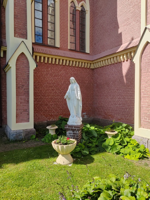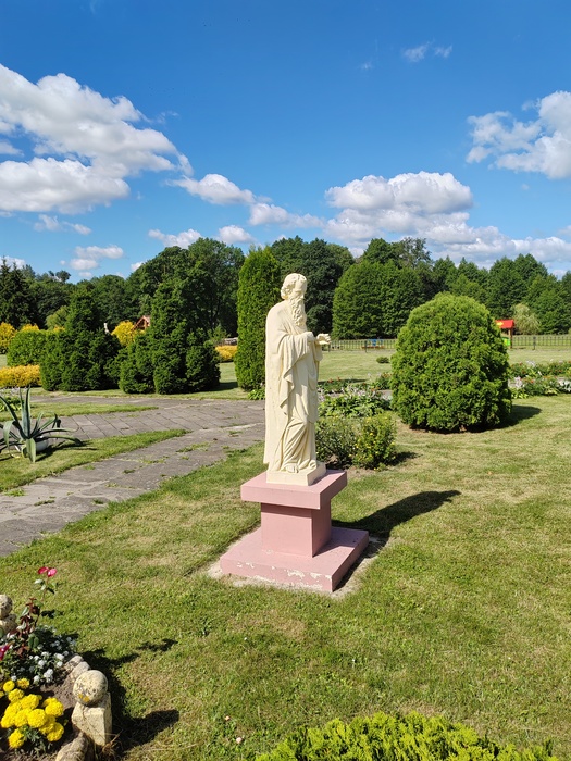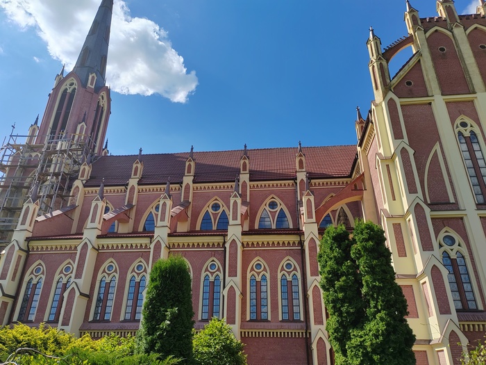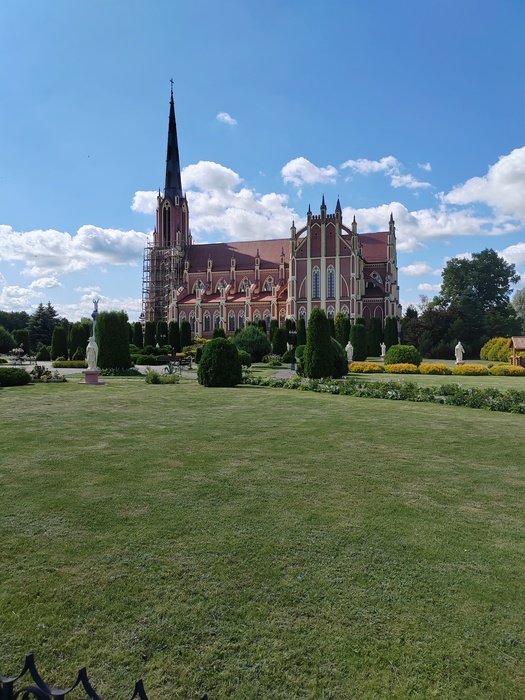 Отправились в 8 утра из Минска. Сначала заехали посмотреть костёл в Гервятах, потому что было по пути. Красивое место.