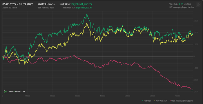 В любом случае, настрой боевой. Из важного не покерного, я начал готовить(учиться) и стал питаться только дома, а это дало чувство контроля, очень хорошо прочуствовал и запомнил. Это действительно важно! Перестал постоянно писать тренеру в зале "меня сегодня не будет". Кажется даже неделю не пил алкоголь. Июнь получился топ2 месяц, спасибо приятному витку диспы. Но вообще после хорошего отдыха постоянно получались хорошие периоды в катке.