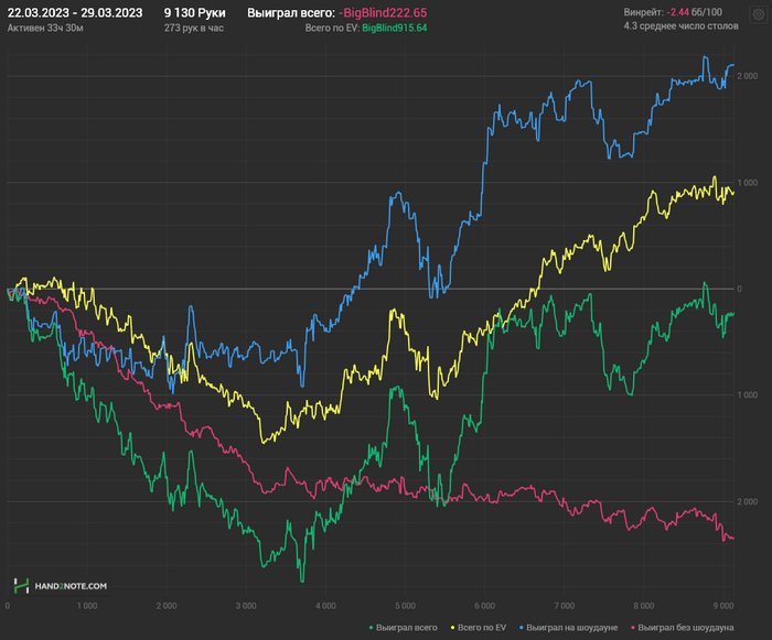 И даже сегодня с утра было всё также пахую. Но с приближением момента начала напряжение во мне нарастало, и последние пару часов мозг был заведён будто под амфетаминами. Впечатления от стрима остались так себе, играть раздачи оказалось ОЧЕНЬ сложным, несмотря на то, что в среднем было полтора стола игры. Когда посмотрел сессию, охренел от количества примитивных ошибок. Ощущения в общем сомнительные, не рекомендую, 2/10.
