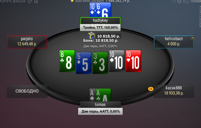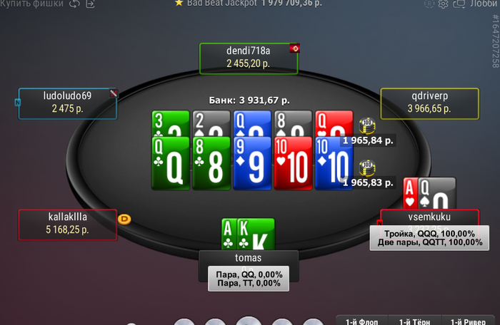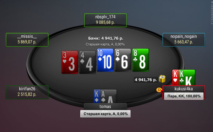 А вот я переехал, докупиться не успел к след раздачу поехал префлоп