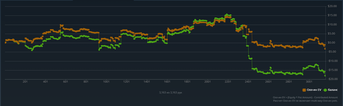 Ну в целом в этих раздачах и есть весь минус за сессию, были конечно еще моменты когда выбрасывал в крупных банках без шоудауна