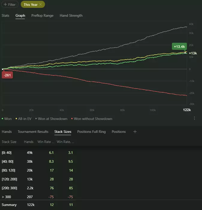 Такие результаты по истечению 6 месяцев с нуля в МТТ, кэш оставил осадок с недобором больше 50БИ за год😅 В общем я очень рад что сменил дисциплину по ряду многих причин.