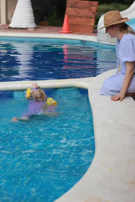 Мы с Софой первым делом поплыли по реке, которая течёт в скалах через весь парк. А Марина с детьми по суше за нами. 😅