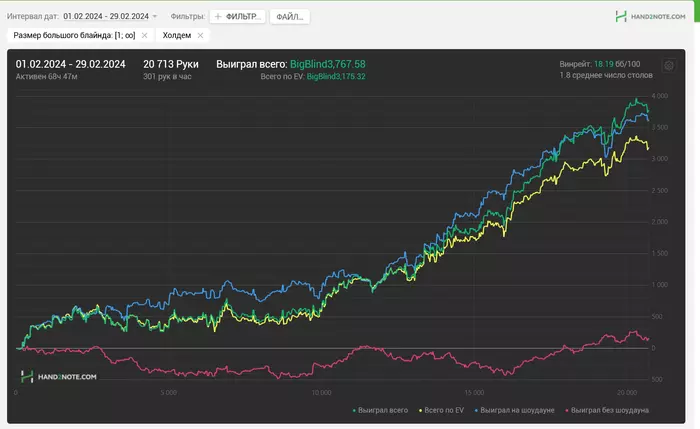 +25(лидерборд)= 550 (РБ). Всего за месяц по h2n $1,549.53 рейка уплочено. Значит РБ вышел ~35,5%.