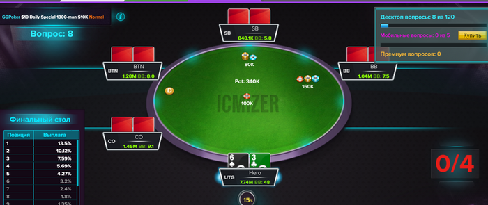 Из этого следует, нужно учиться юзать hrc. Правда у меня в данный момент действует подписка на icmizer, можно ли там строить префлоп спектры например для защиты бб, как в хрц? Просто в видосах почему-то всегда хрц используют.