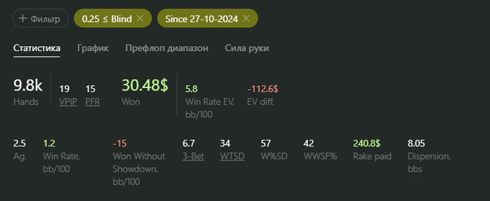 Во во, сам катаю нл 2 неделю. 35 к рук по ев не добор 12-15 байинов, но суть не в этом. тоже лик плохой игры на стек на красивой против фишей. А это ещё больший минус, посмотрел свои руки и прядка 25 байинов можно было не проиграть. даже с недобором и райком шёл бы в + а так ровно в ноль.
