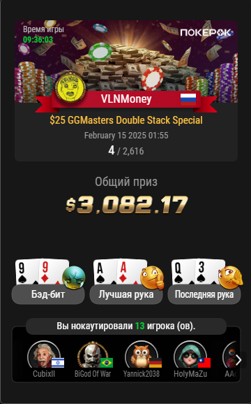 С каждым разом убеждаюсь что прайм для людей, которые любят боль. Сидишь до 6 утра играя 1 стол, чтобы вылететь бабл боем и прокручивать в голове раздачи без возможности заснуть. Вот так меня ноябрь встретил