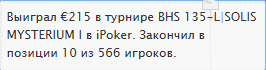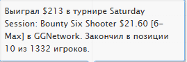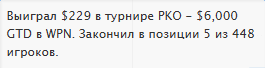 Штош... Сыграл январь в дичайшем переапе. Успел побывать в ФФ и ливнуть через 3 недели со дня вступления, потому что банкролл подрос. Выиграл около 5к(не считая крайнего скрина в блоге) на аби 13 за 200 турниров. Знаю что наиграл очень мало, но тут сказалась моя дурацкая особенность делать длительный перерыв от катки после крупного заноса, а еще волокита с подписанием и расторжением контракта, которая заняла в общей сложности дней 6.