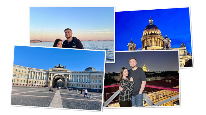 05.09.2024 настал день Х, точка невозврата (билеты невозвратные). Опаздывали на рейс — как оказалось, электронная регистрация не пройдена, плюс перевес багажа на 10 кг… пришлось доплачивать. Но в Питере, конечно, красота! Архитектура, фонтаны, атмосфера — всё впечатлило.