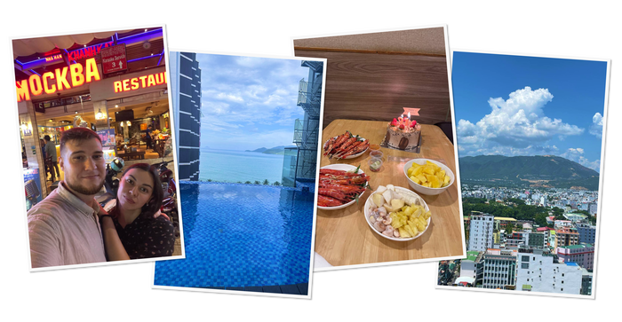 Во Вьетнаме сразу заселились в отель с шикарным видом на море. Отмокнув в море и сгорев на солнце, начали решать вопросы с жильем. Решили снимать квартиру с видом на горы и город.