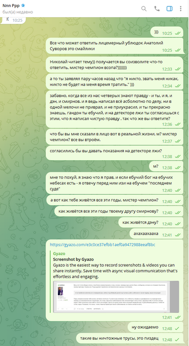 Правда такие сообщения чередуются с сообщениями какой Толя Суворов прекрасный человек и как Павел раскаивается в том, что доставляет периодически психологический дискомфорт своим бредом.