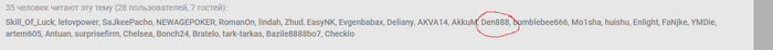 Den888 @ 15.09.23Skill_Of_Luck, да что сказать тебе ,Паш, ты и сам знаешь про себя. ты неблагодарный эгоист застрявший в детстве . ещё и с флягой нездоровой , может от психоделиков , а может и по природе, это врачам надо разбираться . Я не буду больше ничего писать , тебе важен сам факт переписок и споров , ты этим и пытаешься питаться . Присоединюсь к Коле с наставлением идти к врачу и лечиться . знаю что сейчас напишешь кучу вопросов . не старайся я не отвечу.