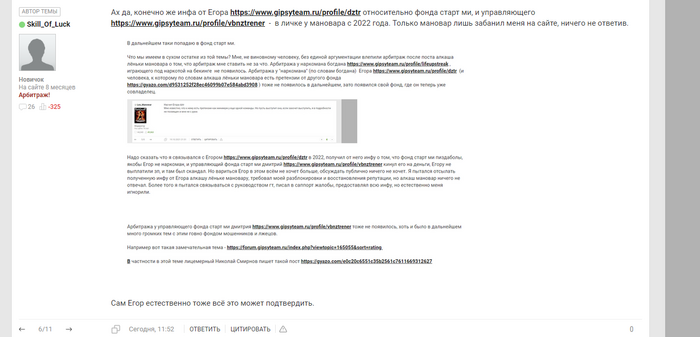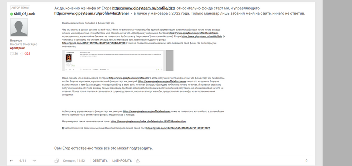 2) инфа от Егора https://www.gipsyteam.ru/profile/dztr относительно фонда старт ми, и управляющего https://www.gipsyteam.ru/profile/vbnztrener - Егор в 2022 году сообщил мне что фонд старт ми пиздаболы, и управляющий фонда старт ми дмитрий https://www.gipsyteam.ru/profile/vbnztrener кинул его на деньги, Егору не выплатили зп, и там был скандал. эта инфа в личке у мановара с 2022 года. Только мановар лишь забанил меня на сайте, ничего не ответив.