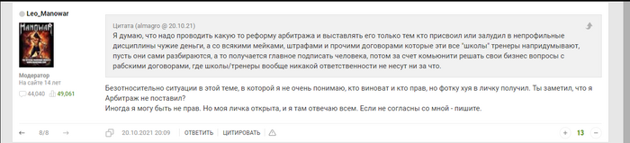 1) тот факт что арбитраж мне не ставился на протяжении всей темы, включая последний пост мановара в теме о том, что арбитраж он не поставил.