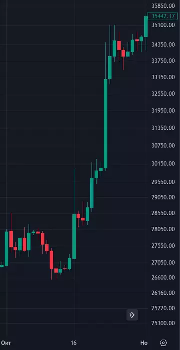 2. Выбрал подходящую дату экспирации(24 ноября) и страйк с наибольшим обьёмом торгов (35000). Наибольший обьём торгов выбирол потому как на опционах торги проходят крайне медленно, на конкретном страйке может быть по 5-10 сделок в сутки. Т.е. пока зайдёшь в опцион цена битка может сильно измениться.