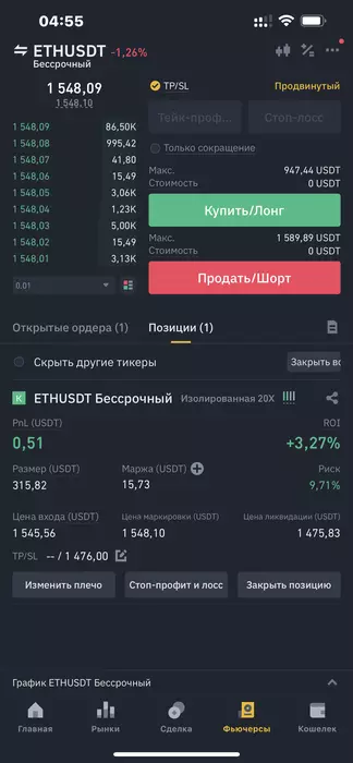 Вот для примера даже взял позицию на 15.73$ с 20-м плечом.