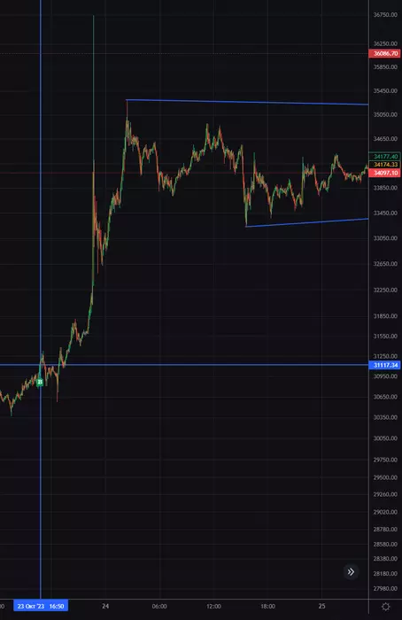 23 октября вечером вышел из шорта на байбит с потерей около 13% от БР на бирже. Общие потери на тот момент за месяц были около 4к или 10% от всего БР. Причина - переоценил ситуацию с учётом недавнего разбора своих заметок. Понятно было что сам набор позиции происходил в разрез с моей стратегией. И в текущий момент если даже представить что у меня нет никаких позиций не подхлдил для набора позиций никак. Поэтому пришлось принять неприятное решение (закрыл шорты в "-"). Так же закрыл шорты которые хэджировали биток на кошельке (0,6 BTC)