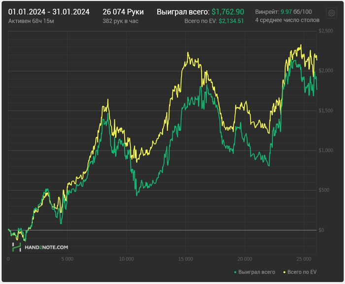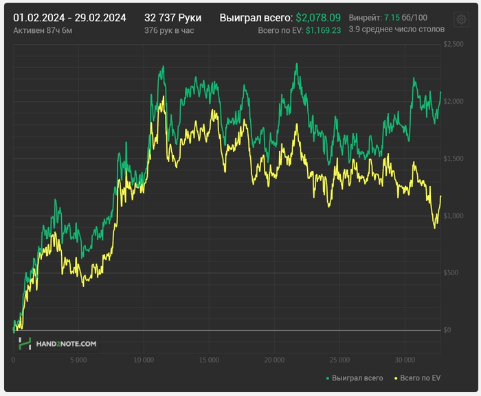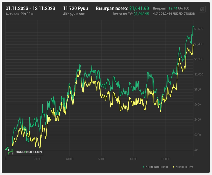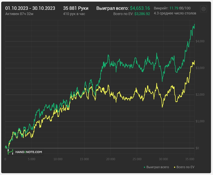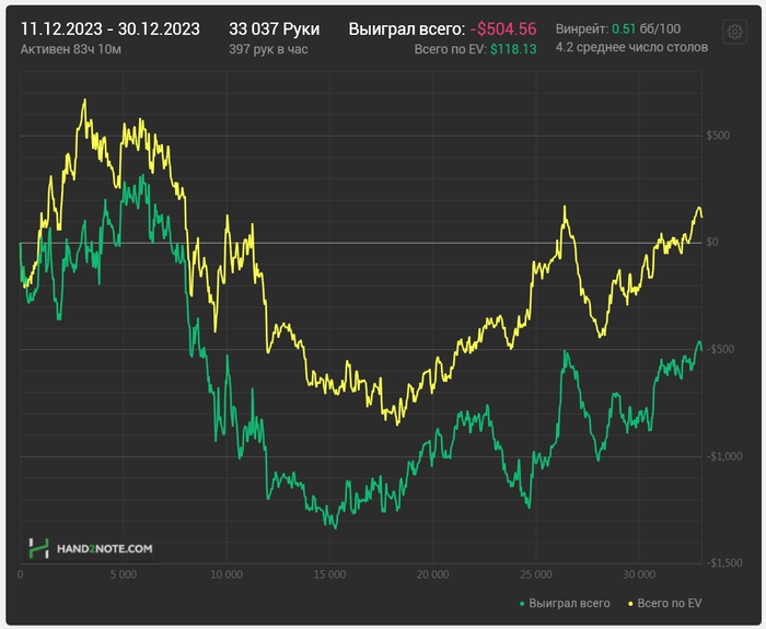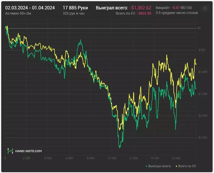 Отыграл в целом неплохо, но появилось многовато автопилота. Лимит воспринимается слишком безопасным и освоенным, и мозг отказывается стараться на полную. Для поддержания тонуса и должной мотивации нужен переход на нл200, но он пока невозможен.