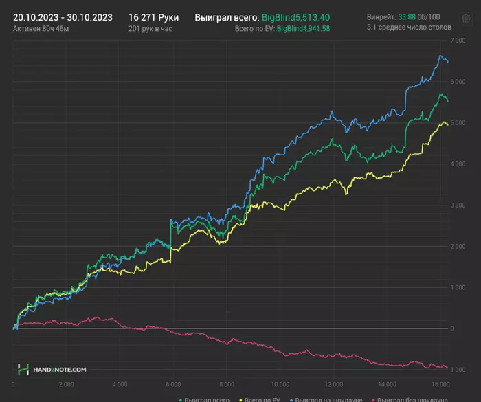 Теперь о покере, всё таки блог находится в соответствующем разделе. Собрал все руки, что нашёл, тут, я думаю, не хватает ~30к, с gg полуторагодичной давности, которые уже, по идее, никак не достать. Когда хочется поныть и потильтовать, часто смотрю на эти картинки, понимая, что на дистанции все эти переживания абсолютно бессмысленны.