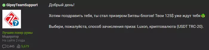 Всем привет. Сегодня получил приятное сообщение от администрации.