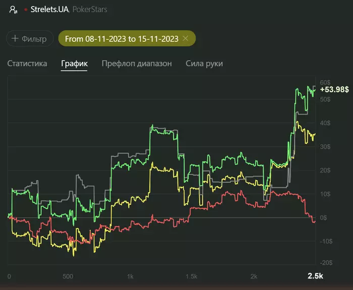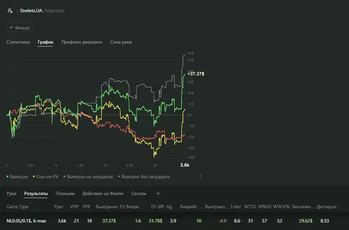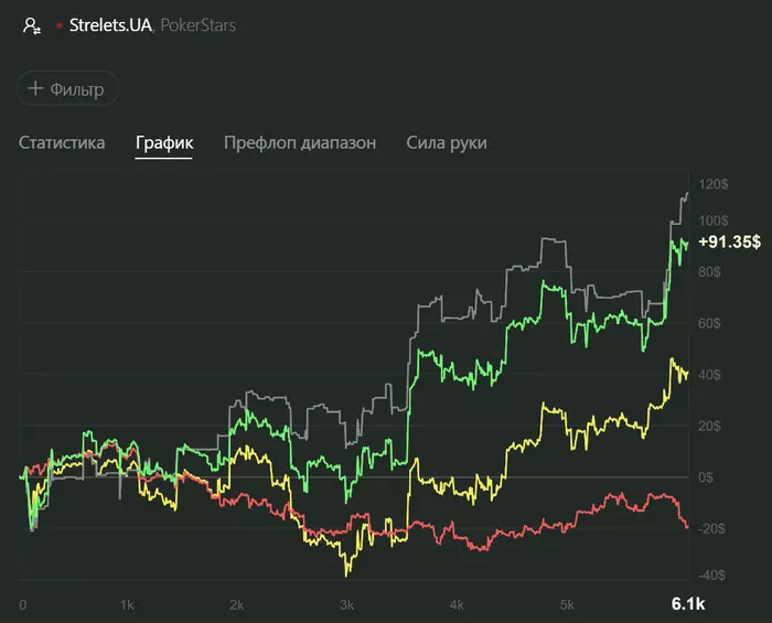 В общем для меня пока это очень не просто и не привычно. Я начинаю нервничать когда долго не могу сесть за нормальный стол и это сказывается на игре. Но постепенно нужные оппоненты находятся и жизнь налаживается. Сессии по колличеству рук получаются пока совсем маленькими, по сравнению с сессией в зуме, но пытаюсь по этому поводу не заморачиваться. Учеба она такая...