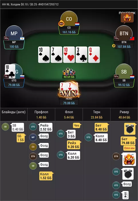 Jeime_Lan, во многом согласен я вообще довольно нитовый префлоп и очень мало имею колов на ранней против 3 бета ооп в основном 4 бетом защищаюсь, но тебе не нужно + показывать, а всего лучше чем -200бб/100 и не быть профи, а быть на уровне твоего соперника, а учитывая что вы играете один лимит думаю в среднем так и будет и рука 87s скорее всего для колла будет лучше KTs и QJs например