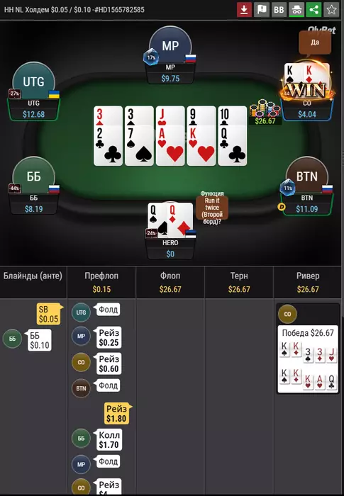 Эта раздача прям покоя не дает. На последней секунде таймбанка отколлил. О чем он там думал я хз, неужели блеф настолько обосраный?