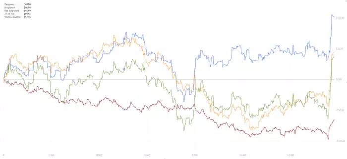 Понял, что утренние сессии конкретно портят винрейт. Утром график вниз, вечером — вверх. Пока не знаю, как побороть соблазн покатать с утреца.