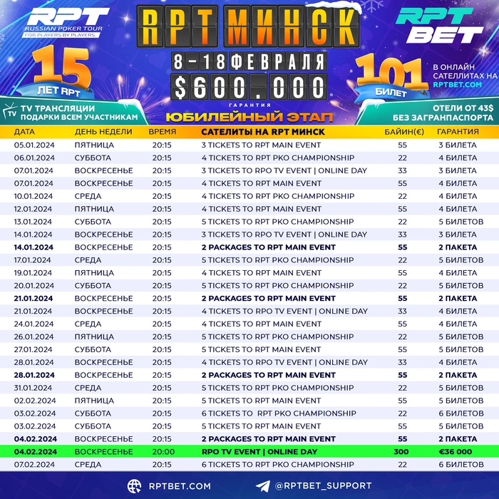 Представляю структуры всех турниров предстоящей серии RPT в Минске с 08 по 18 февраля 2024 года.