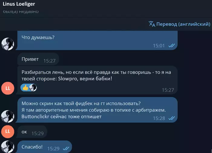 Ничему людей жизнь не учит конечно, подобные ситуации уже были много раз, в начале человек выебывается, бабки возвращать не буду и ТД и ТП, потом получает арбитраж, красную репу, и понимает что на дистанции потеряет сейчас гораздо больше и имя свое убьет, потом пишет пост мол чот я психанул пацаны, на эмоциях был, возвращает бабки, но осадок у людей остаётся. Реально как будто из за своего эго люди связь с реальностью теряют, пока совсем пиздец не начинается