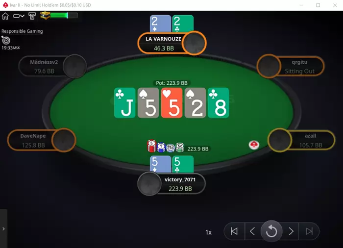 Вчера игровой день складывался ни шатко, ни валко. Какие-то недоезды постоянные, если сет, то обязательно соперник валит с потенциальным стритом или флешом. Очень много приходилось скидывать перспективных на флопе, но доминируемых к риверу рук. В плюс выехала за счет 2-х доездов натсовых флешей.