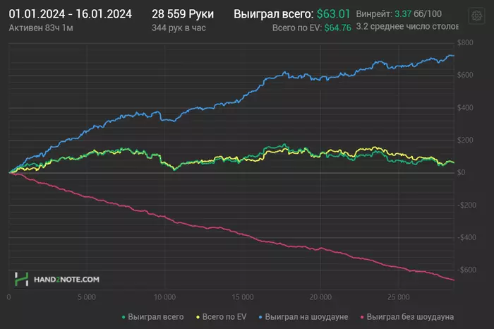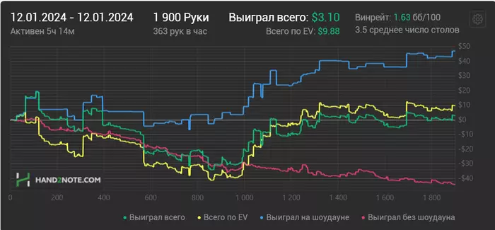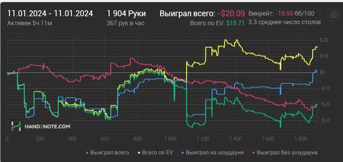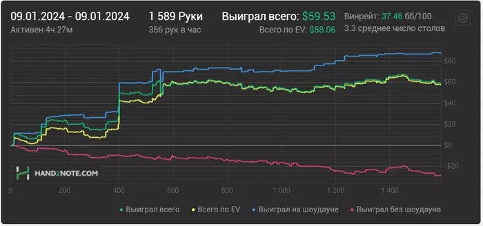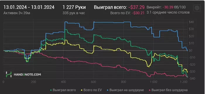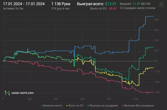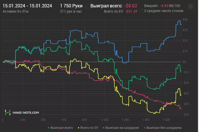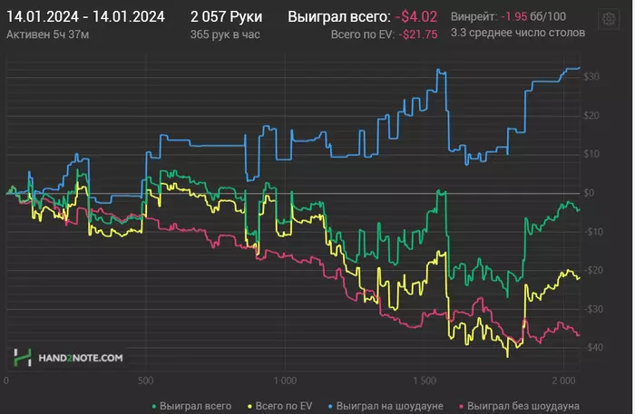 Ближайшие дни буду перепроверять чарты и избавляться от всяких вредных привычек типа колд колла с мелкими парами. Есть за мной такой грешок. Подозреваю, что есть большая проблема с игрой на терне и ривере, особенно в 3-бет потах. Буду пытаться понять, что там не так. Всем удачи 🤗