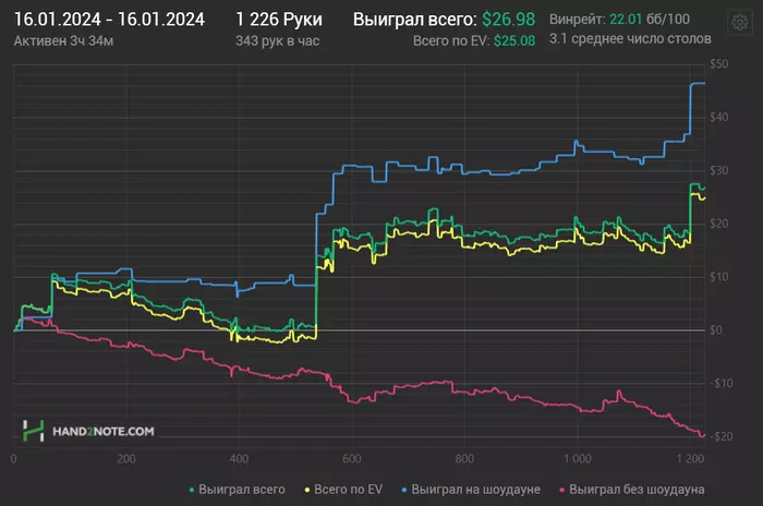 Вчерашний день был не так уж и плох) Правда отыграла почти в 2 раза меньше раздач, но очень внимательно.